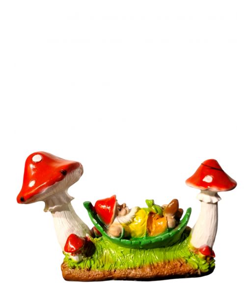 KRASNAL ŚPIĄCY NA HAMAKU MIĘDZY MUCHOMORAMI