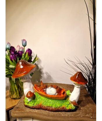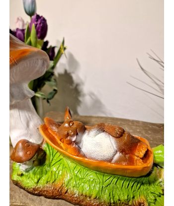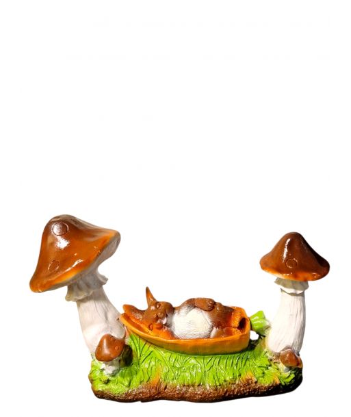 ZAJĄC ŚPIĄCY NA HAMAKU MIĘDZY GRZYBAMI