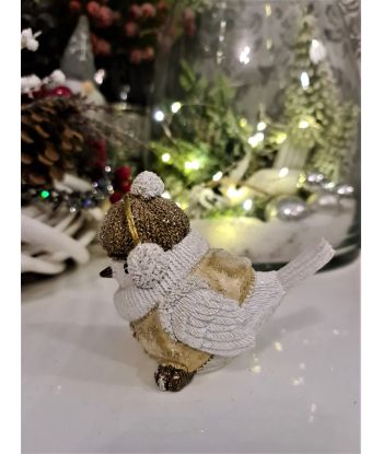 OZDOBA ŚWIĄTECZNA - BIAŁY PTAK / PTASZEK W NAUSZNIKACH