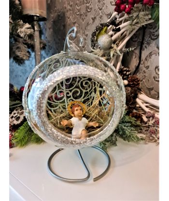 OZDOBA ŚWIĄTECZNA - DUŻA BOMBKA 120 mm SZOPKA model I + stojak