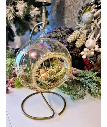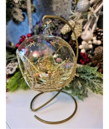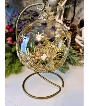 OZDOBA ŚWIĄTECZNA - DUŻA BOMBKA 120 mm SZOPKA model X + stojak