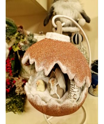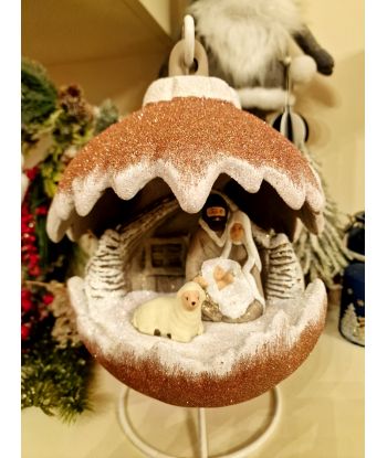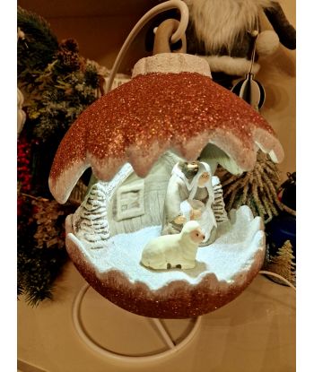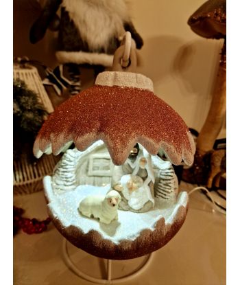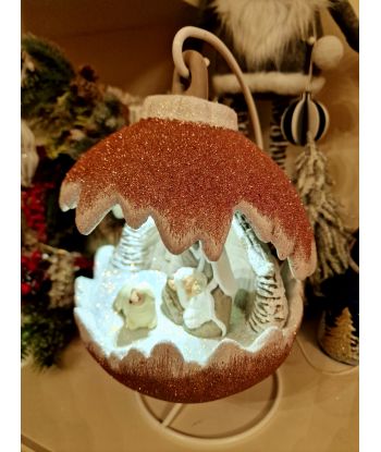 OZDOBA ŚWIĄTECZNA - KULA SZOPKA BOŻONARODZENIOWA LED róż model A