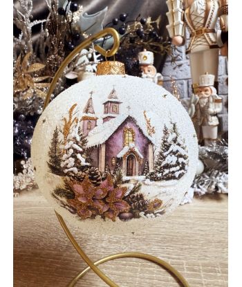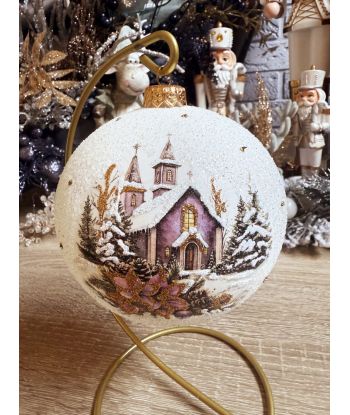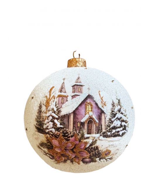 OZDOBA ŚWIĄTECZNA - DUŻA BOMBKA 120 mm decoupage DOM DOMEK model III