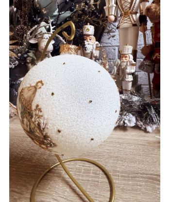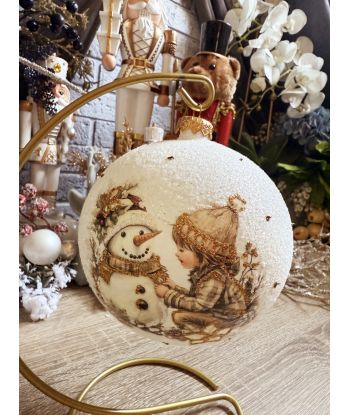 OZDOBA ŚWIĄTECZNA - DUŻA BOMBKA 120 mm DECOUPAGE DZIECI Z BAŁWANEM model III
