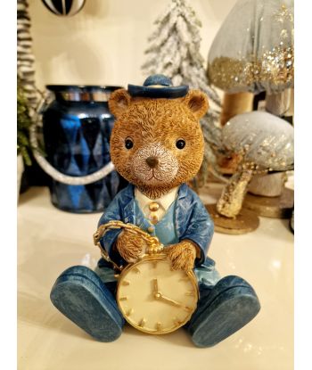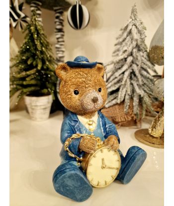 OZDOBA ŚWIĄTECZNA - MIŚ NIEDŹWIEDŹ SIEDZĄCY Z ZEGAREM