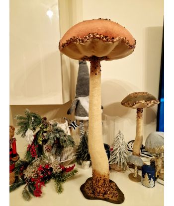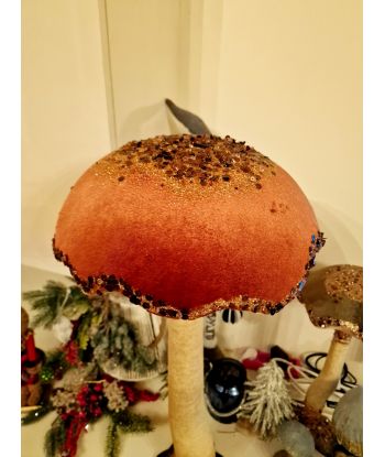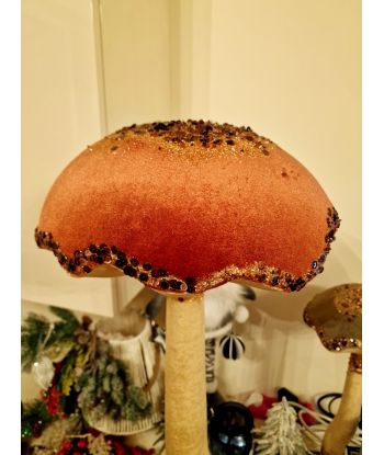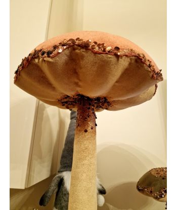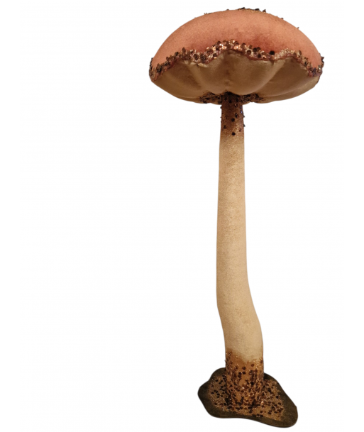 Grzyb wykonany z weluru w zielonym kolorze, ozdobiony brokatem, to stylowy element dekoracyjny, który doda charakteru każdemu wnętrzu. O wysokości 83 cm, grzyb doskonale nadaje się do wyeksponowania na półkach, stołach czy w donicach.