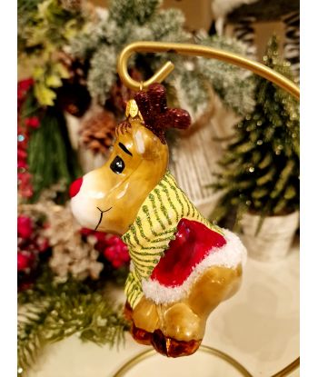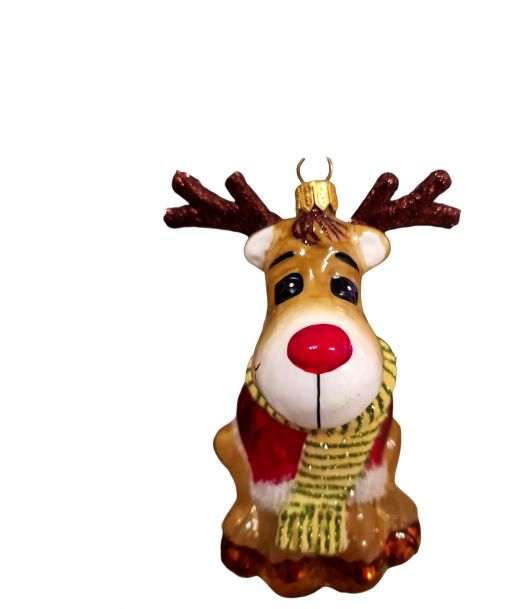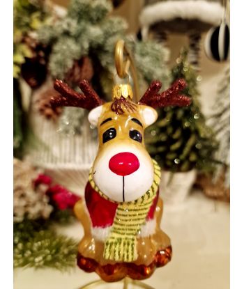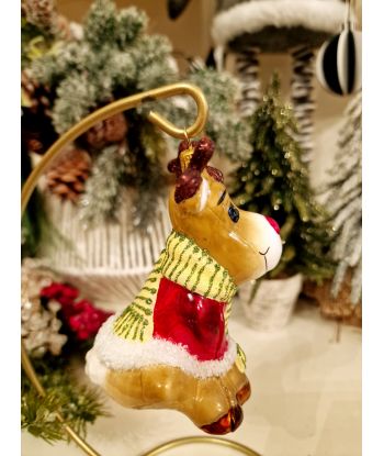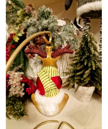OZDOBA ŚWIĄTECZNA - ZAWIESZKA BOMBKA - SIEDZĄCY RENIFER W SZALIKU