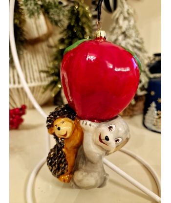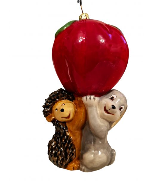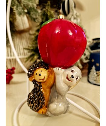 OZDOBA ŚWIĄTECZNA - ZAWIESZKA BOMBKA - ZAJĄC I JEŻ Z JABŁKIEM - Komozja