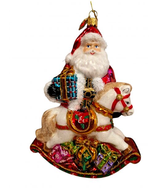 OZDOBA ŚWIĄTECZNA - ZAWIESZKA BOMBKA - MIKOŁAJ Z KONIEM NA BIEGUNACH HURAS FAMILY