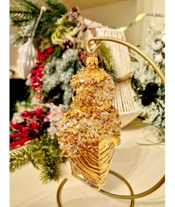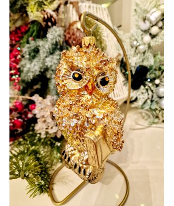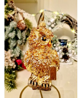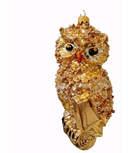 OZDOBA ŚWIĄTECZNA - ZAWIESZKA BOMBKA - duża SOWA Z KSIĄŻKĄ model V złota