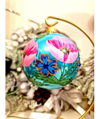 OZDOBA ŚWIĄTECZNA - ŚREDNIA BOMBKA 100 mm FLORA kwiaty model II