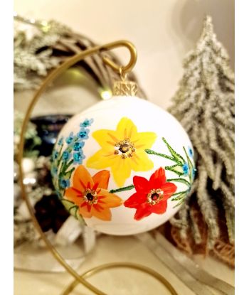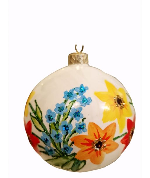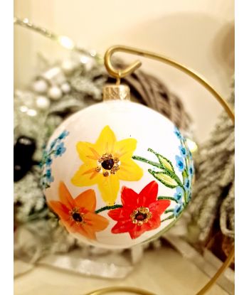 OZDOBA ŚWIĄTECZNA - ŚREDNIA BOMBKA 100 mm FLORA kwiaty model III