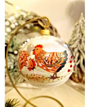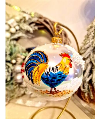 OZDOBA ŚWIĄTECZNA - ŚREDNIA BOMBKA 100 mm KOGUT I KURA model I