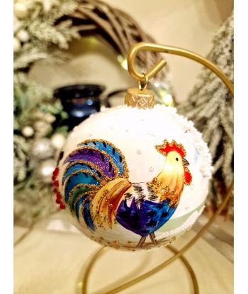 OZDOBA ŚWIĄTECZNA - ŚREDNIA BOMBKA 100 mm KOGUT I KURA model Ia