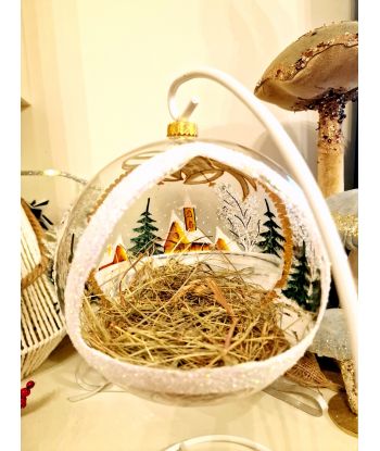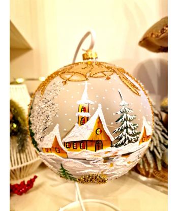 OZDOBA ŚWIĄTECZNA - DUŻA BOMBKA 200 mm PEJZAŻ model VII + stojak