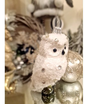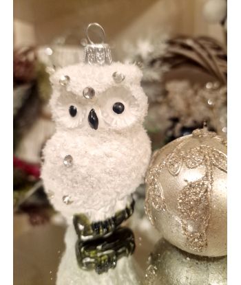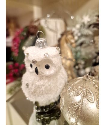 OZDOBA ŚWIĄTECZNA - ZAWIESZKA BOMBKA - mała SOWA Z KSIĄŻKĄ model I biała