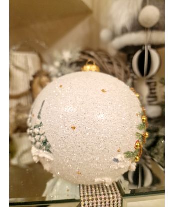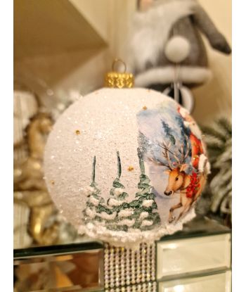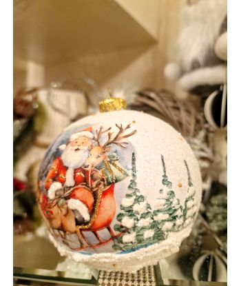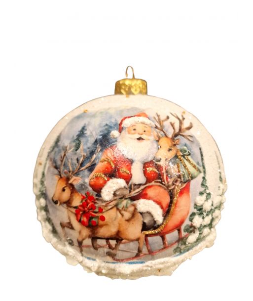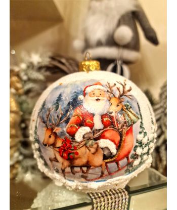 OZDOBA ŚWIĄTECZNA - DUŻA BOMBKA 120 mm DECOUPAGE MIKOŁAJ W SANIACH