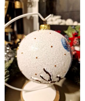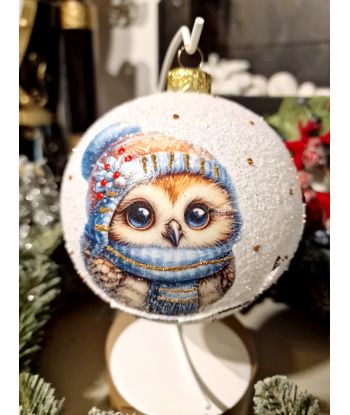 OZDOBA ŚWIĄTECZNA - DUŻA BOMBKA 120 mm DECOUPAGE PTASZKI SOWA model I
