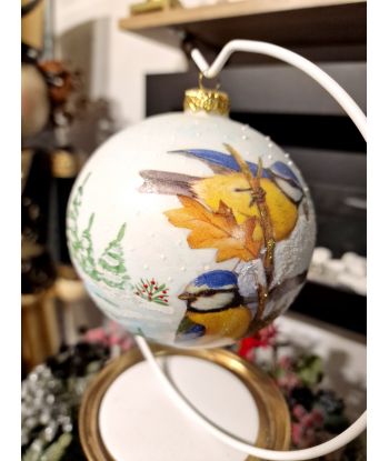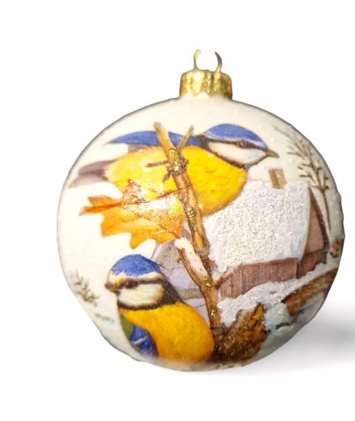 OZDOBA ŚWIĄTECZNA - DUŻA BOMBKA 120 mm DECOUPAGE PTASZKI model VI
