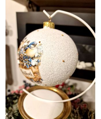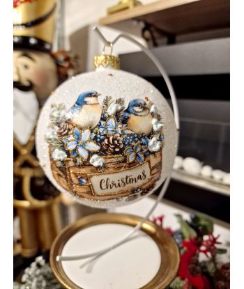 OZDOBA ŚWIĄTECZNA - DUŻA BOMBKA 120 mm DECOUPAGE PTASZKI model IIIa