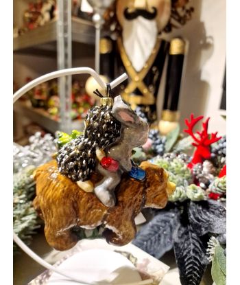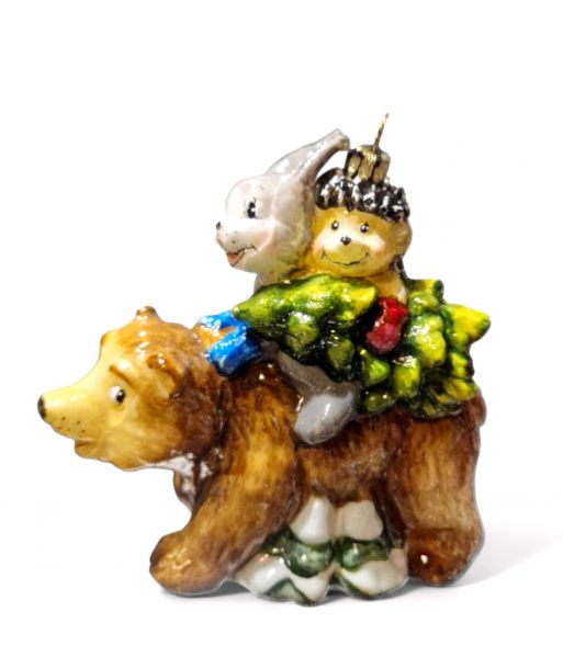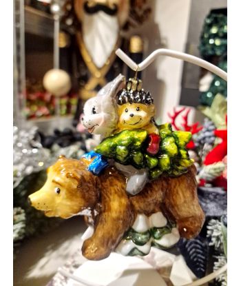 OZDOBA ŚWIĄTECZNA - ZAWIESZKA BOMBKA - ZWIERZĘTA NA NIEDŹWIEDZIU - Komozja