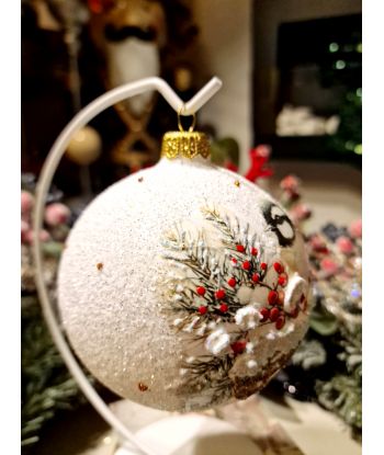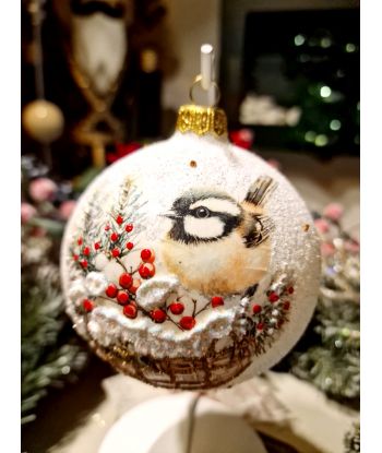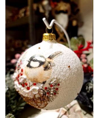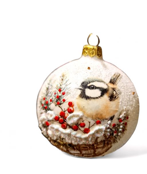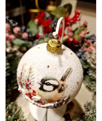 OZDOBA ŚWIĄTECZNA - DUŻA BOMBKA 100 mm DECOUPAGE PTASZEK model I