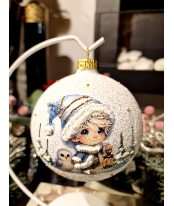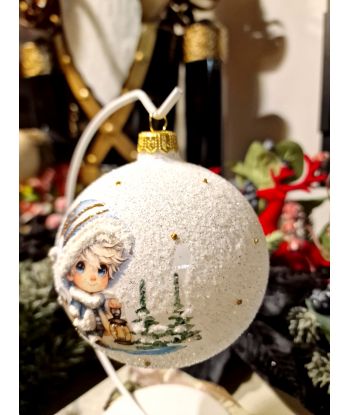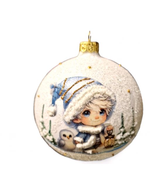 OZDOBA ŚWIĄTECZNA - DUŻA BOMBKA 100 mm DECOUPAGE ELF BOŻONARODZENIOWY model II