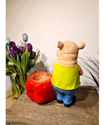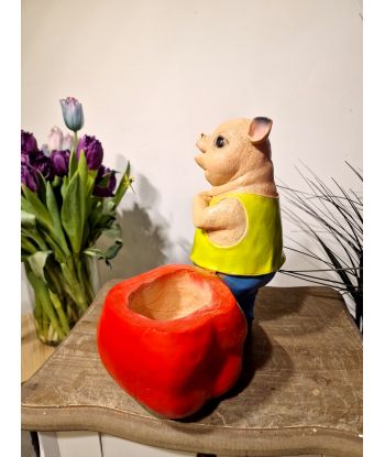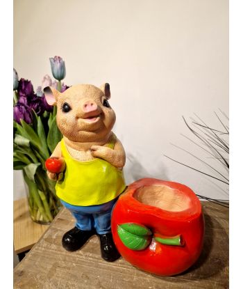 ŚWINIA ŚWINKA STOJĄCA Z DONICZKĄ - JABŁKIEM