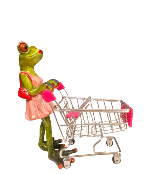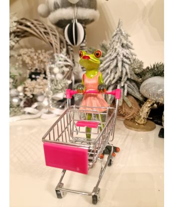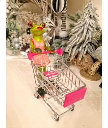 FIGURA CERAMICZNA - ŻABA / ŻABKA Z WÓZKIEM SKLEPOWYM model I