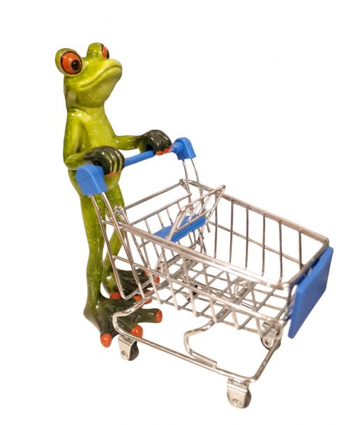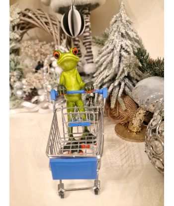 FIGURA CERAMICZNA - ŻABA / ŻABKA Z WÓZKIEM SKLEPOWYM model II