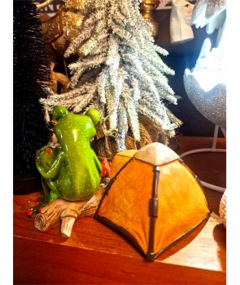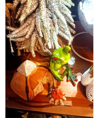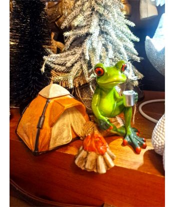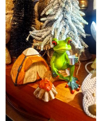 FIGURA CERAMICZNA - ŻABA / ŻABKA NA KEMPINGU / POD NAMIOTEM