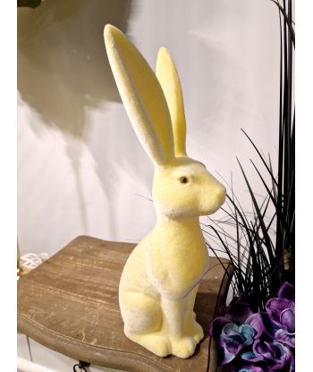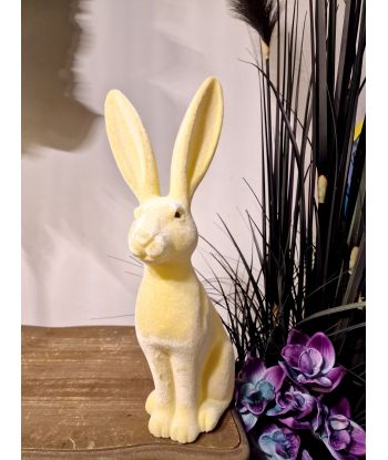 Elegancki flokowany zając to wyjątkowa dekoracja, która doda uroku każdemu wnętrzu. Pokryty delikatnym, aksamitnym w dotyku meszkiem prezentuje się niezwykle stylowo i naturalnie. Idealnie sprawdzi się jako ozdoba wielkanocna, wiosenna dekoracja domu lub element aranżacji stołu.