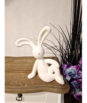 Elegancki flokowany zając to wyjątkowa dekoracja, która doda uroku każdemu wnętrzu. Pokryty delikatnym, aksamitnym w dotyku meszkiem prezentuje się niezwykle stylowo i naturalnie. Idealnie sprawdzi się jako ozdoba wielkanocna, wiosenna dekoracja domu lub element aranżacji stołu.