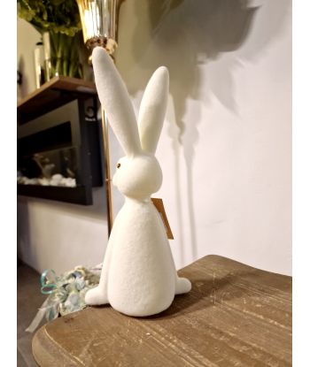 Elegancki flokowany zając to wyjątkowa dekoracja, która doda uroku każdemu wnętrzu. Pokryty delikatnym, aksamitnym w dotyku meszkiem prezentuje się niezwykle stylowo i naturalnie. Idealnie sprawdzi się jako ozdoba wielkanocna, wiosenna dekoracja domu lub element aranżacji stołu.
