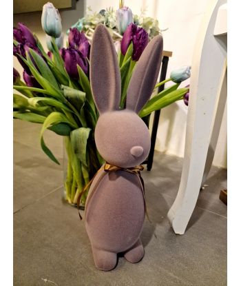 Elegancki flokowany zając to wyjątkowa dekoracja, która doda uroku każdemu wnętrzu. Pokryty delikatnym, aksamitnym w dotyku meszkiem prezentuje się niezwykle stylowo i naturalnie. Idealnie sprawdzi się jako ozdoba wielkanocna, wiosenna dekoracja domu lub element aranżacji stołu.