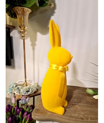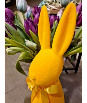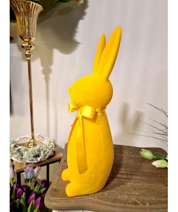 Elegancki flokowany zając to wyjątkowa dekoracja, która doda uroku każdemu wnętrzu. Pokryty delikatnym, aksamitnym w dotyku meszkiem prezentuje się niezwykle stylowo i naturalnie. Idealnie sprawdzi się jako ozdoba wielkanocna, wiosenna dekoracja domu lub element aranżacji stołu.