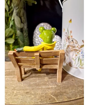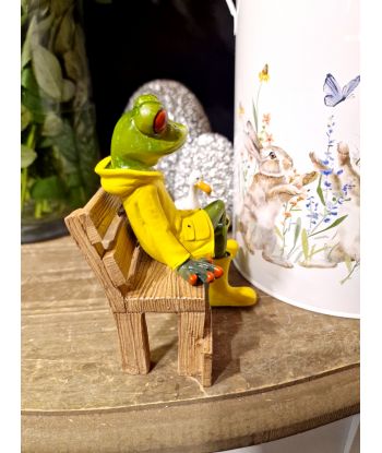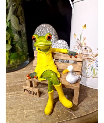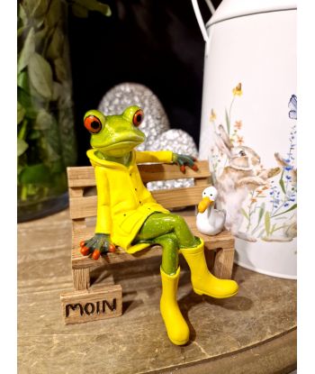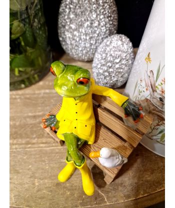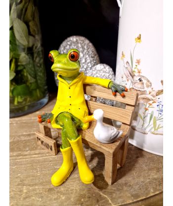 FIGURA CERAMICZNA - ŻABA / ŻABKA NA ŁAWCE Z MEWĄ