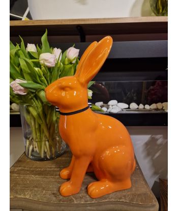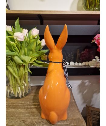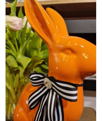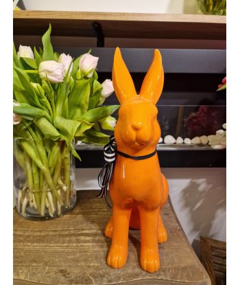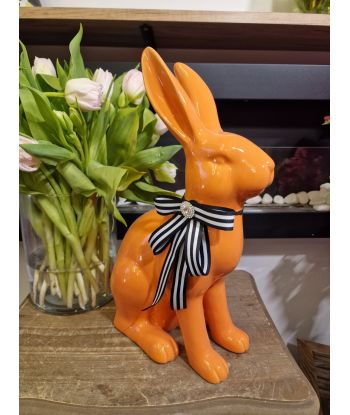 FIGURA CERAMICZNA - KRÓLIK ZAJĄC Z KOKARDĄ morelowy model I