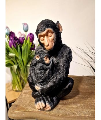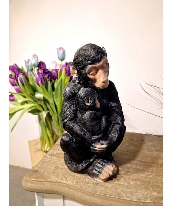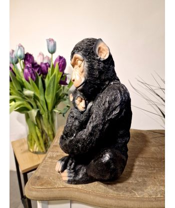 MAŁY GORYL MAŁPA SZYMPANS SIEDZĄCY Z MŁODYM