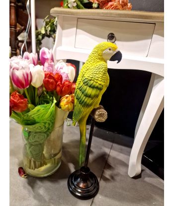 FIGURA OZDOBNA - SIEDZĄCA PAPUGA NA PNIU zielona model C