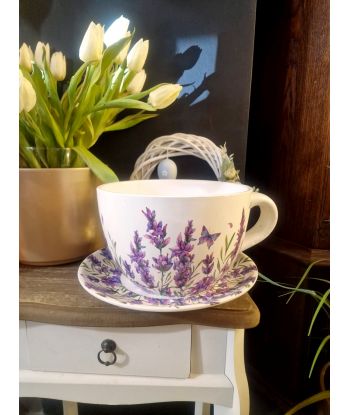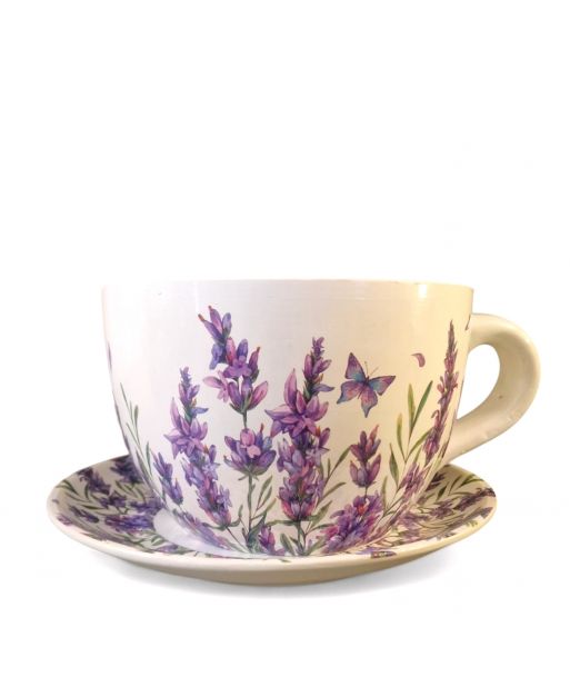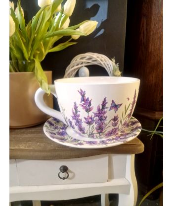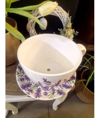 Ceramiczna doniczka w kształcie filiżanki ze spodeczkiem – urocza dekoracja do Twojego wnętrza!