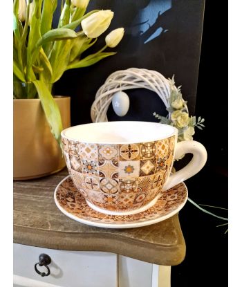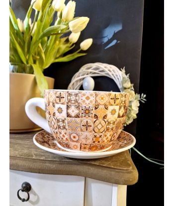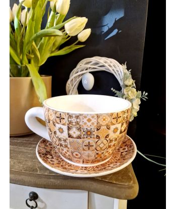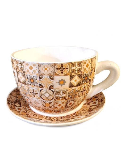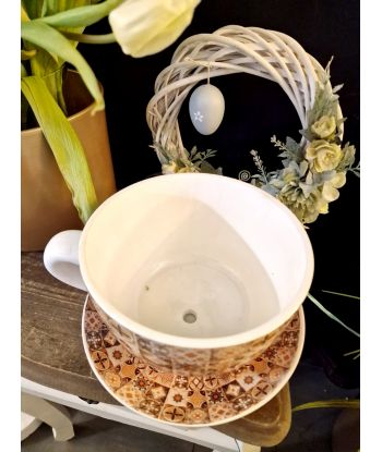 Ceramiczna doniczka w kształcie filiżanki ze spodeczkiem – urocza dekoracja do Twojego wnętrza!