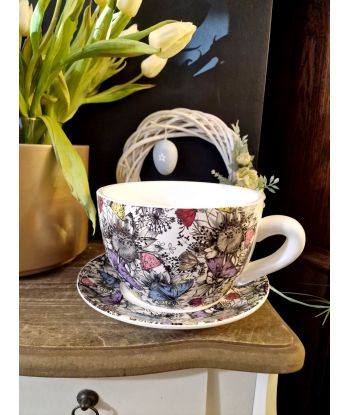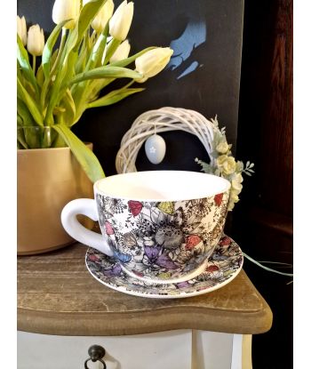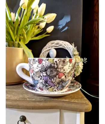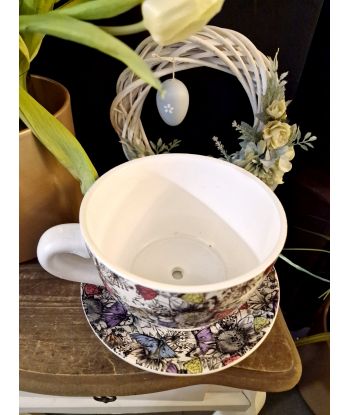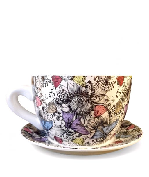 Ceramiczna doniczka w kształcie filiżanki ze spodeczkiem – urocza dekoracja do Twojego wnętrza!