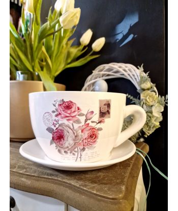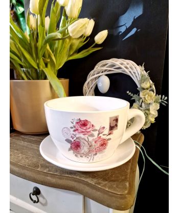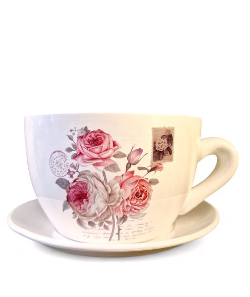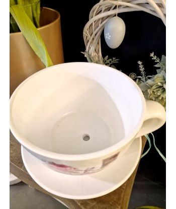 Ceramiczna doniczka w kształcie filiżanki ze spodeczkiem – urocza dekoracja do Twojego wnętrza!