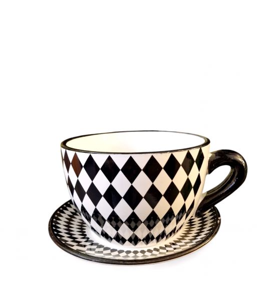 Ceramiczna doniczka w kształcie filiżanki ze spodeczkiem – urocza dekoracja do Twojego wnętrza!