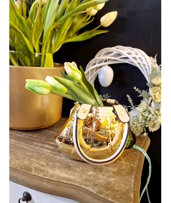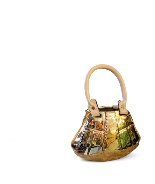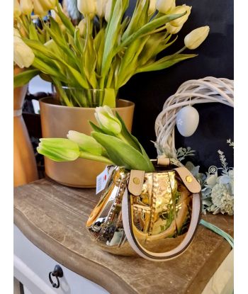 WAZON W KSZTAŁCIE TOREKI ZE SKÓRZANYMI USZAMI model I złoty