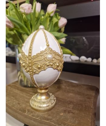 FIGURA WIELKANOCNA - ELEGANCKIE JAJKO PISANKA model I biały