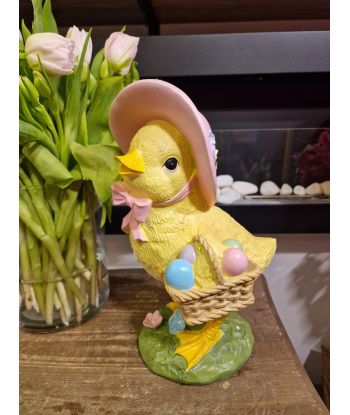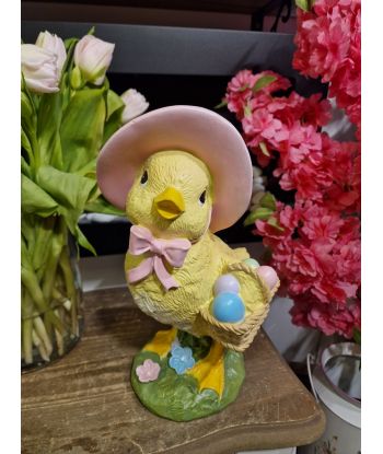 FIGURA WIELKANOCNA - KURCZAK W KAPELUSZU Z KOSZYKIEM