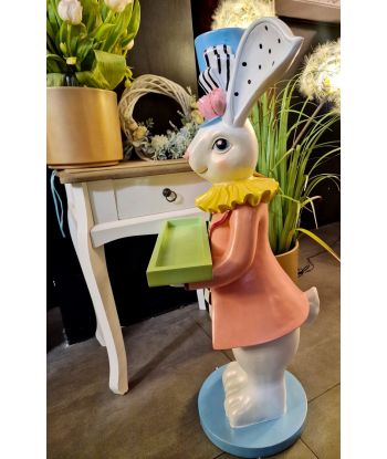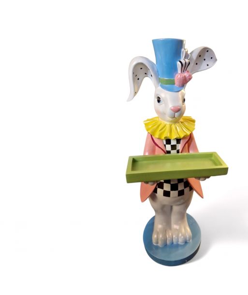 FIGURA WIELKANOCNA - PASTELOWY KRÓLIK ZAJĄC Z TACĄ model I