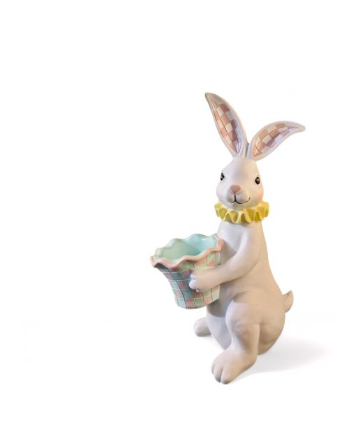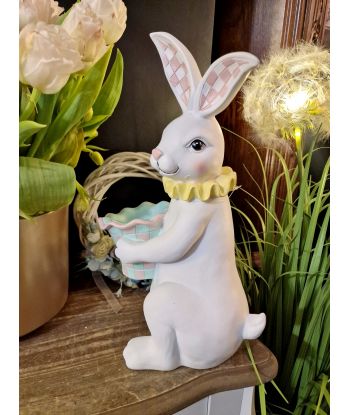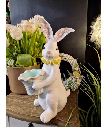 FIGURA WIELKANOCNA - PASTELOWY KRÓLIK ZAJĄC Z KOSZEM model II